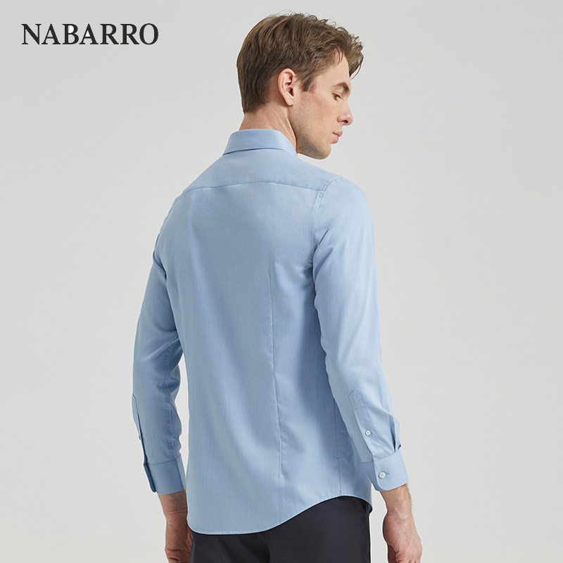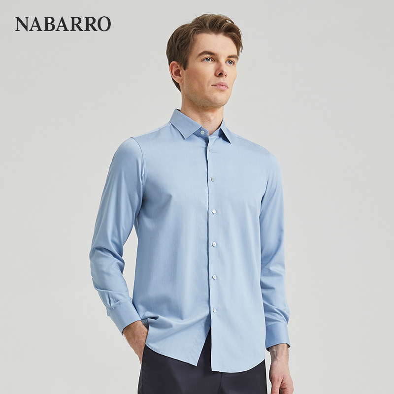 衬衫 纳巴罗男士 商务休闲上班日常浅蓝色含桑蚕丝长袖