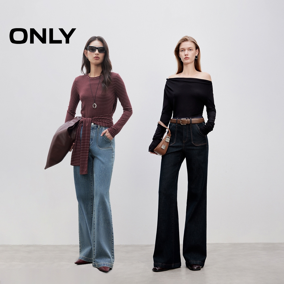 ONLY大口袋喇叭裤 衣橱直播间 腰带喇叭裤 所有女生