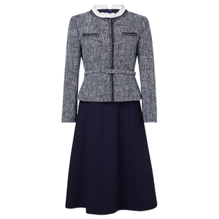 小香风时尚 新品 娜家25冬季 气质显瘦假两件连衣裙子 商场同款