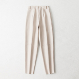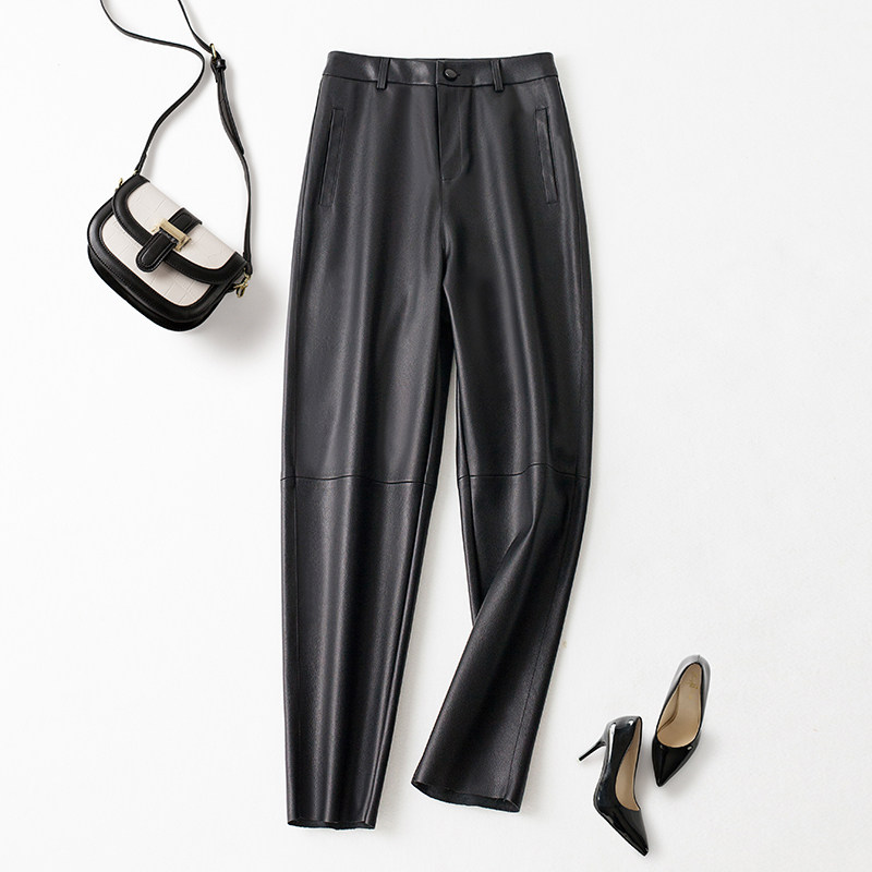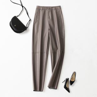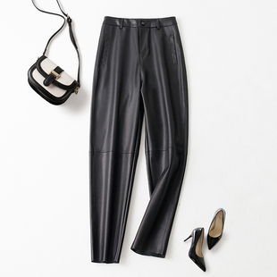 高腰显瘦九分休闲萝卜裤 绵羊皮小脚哈伦裤 女2025新款 海宁真皮皮裤