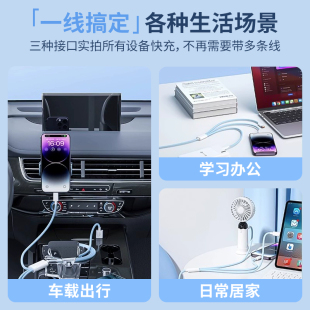 120W三合一数据线适用苹果typec安卓2米单条