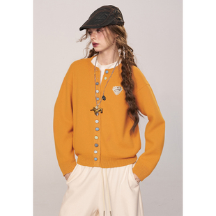 休闲显瘦学院风 新款 妖精 口袋黄色慵懒风新年毛衣女2025年冬季