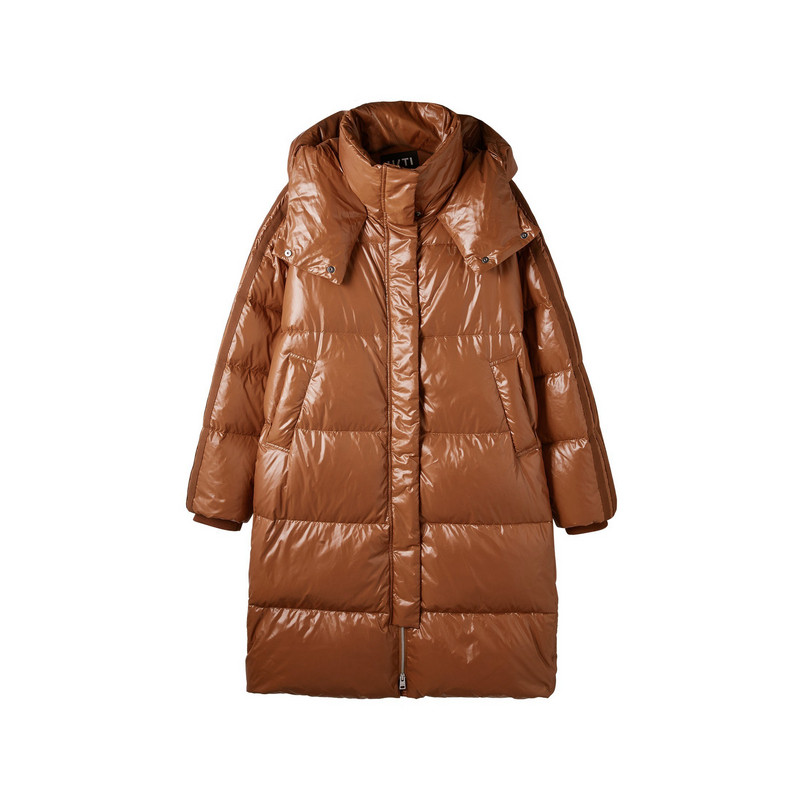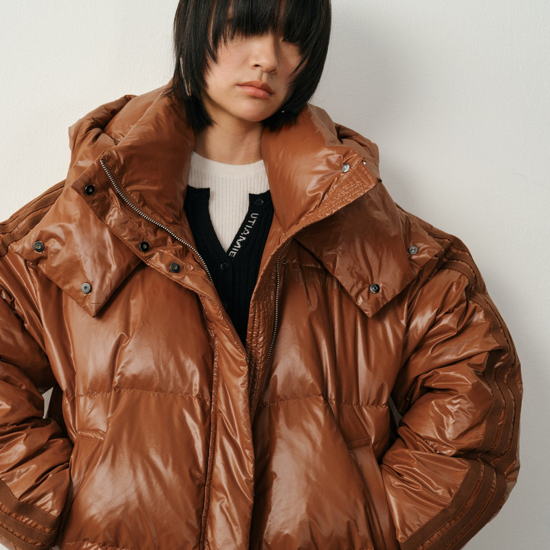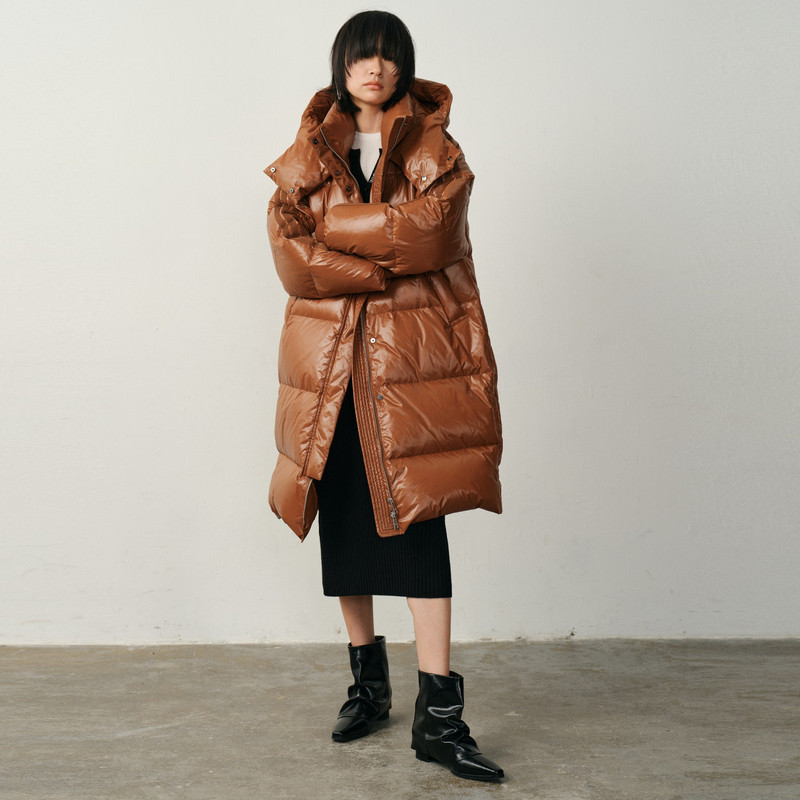 新款 零压廓感茧型外套尤缇2025冬季 羽绒服女装 TI亮面防风领长款