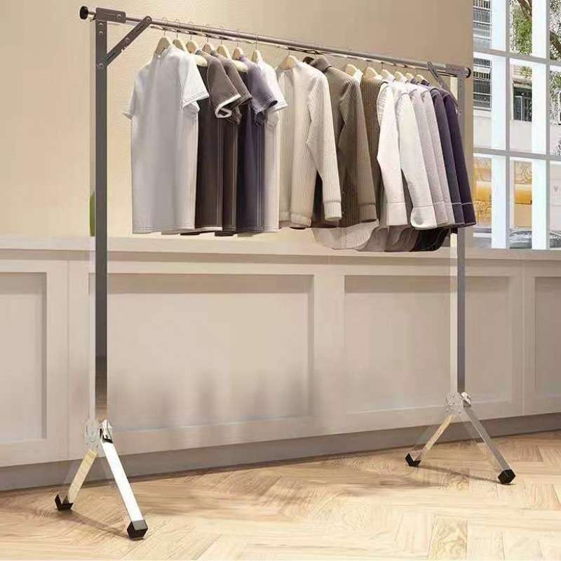 晾衣架 折叠不锈钢室内外晒衣架双杆晒阳台挂衣架X型晾衣杆 落地