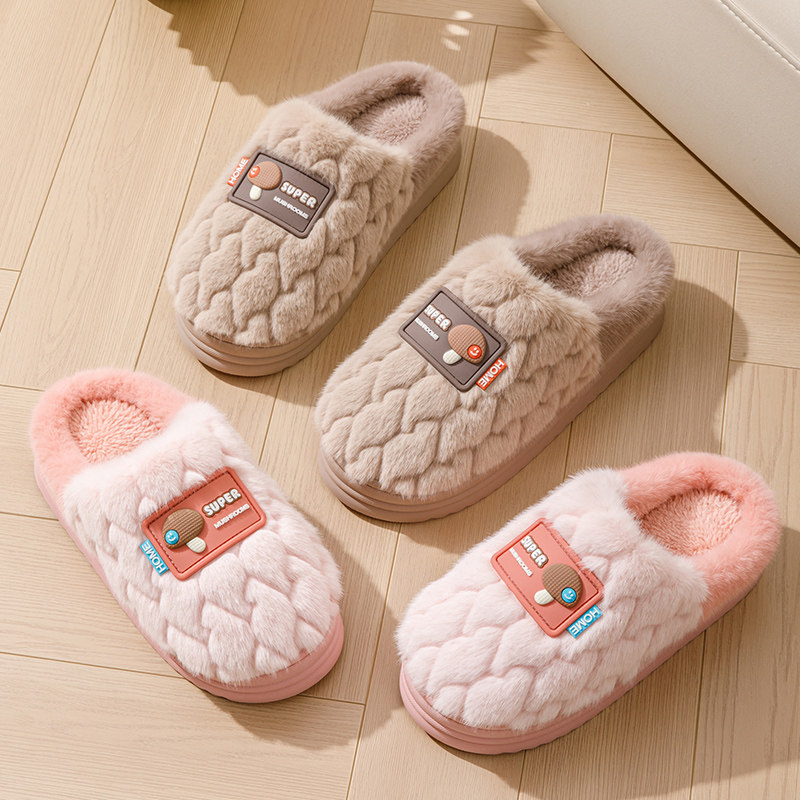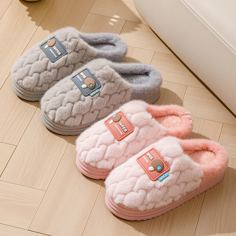 加绒保暖情侣 家居家用室内防滑厚底男可爱毛毛拖鞋 棉拖鞋 女士冬季