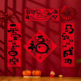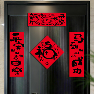福字门贴2026马年新款 饰春节布置 创意绒布对联家用过年春联新年装