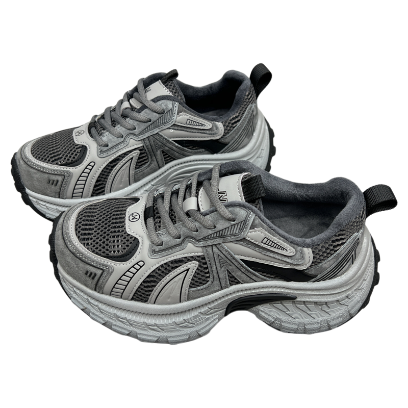 女款 厚底加绒增高休闲运动鞋 2025爆款 新款 秋冬季 达芙妮灰色老爹鞋