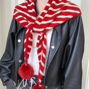 100%羊毛韩版 氛围感保暖围巾围脖外搭 ins百搭三角大披肩女秋冬季