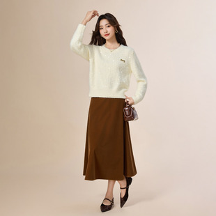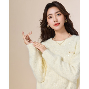 温柔通勤气质设计感亮片百搭毛织上衣 法式 IEF 爱依服2025秋冬新款