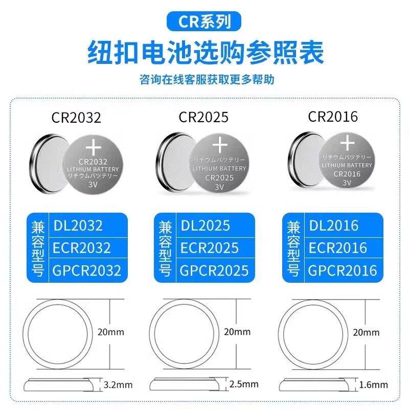 CR2025 CR1220 CR2016 CR2450 CR1620CR1616汽车钥匙遥控器测试仪电子秤体重秤 CR1632 卢邦3V纽扣电池CR2032