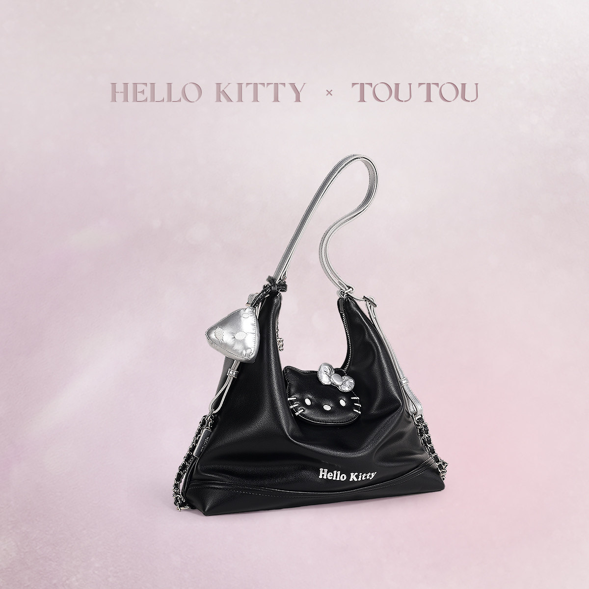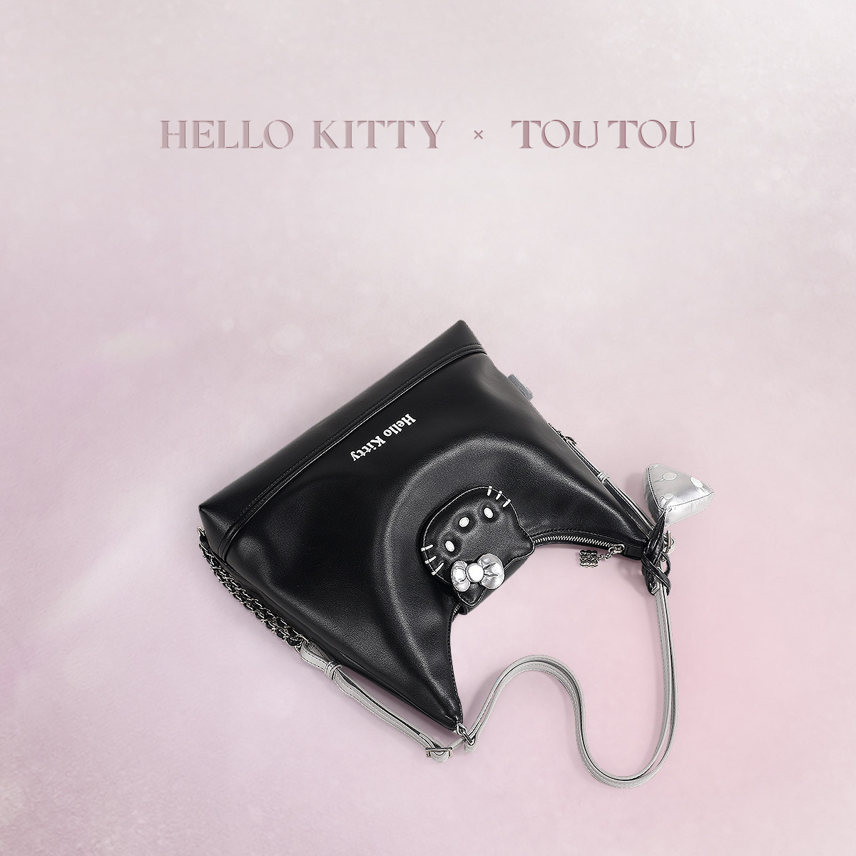 TOUTOUhellokitty三丽鸥联名凯蒂猫黑皮托特包双肩包女孩生日礼物