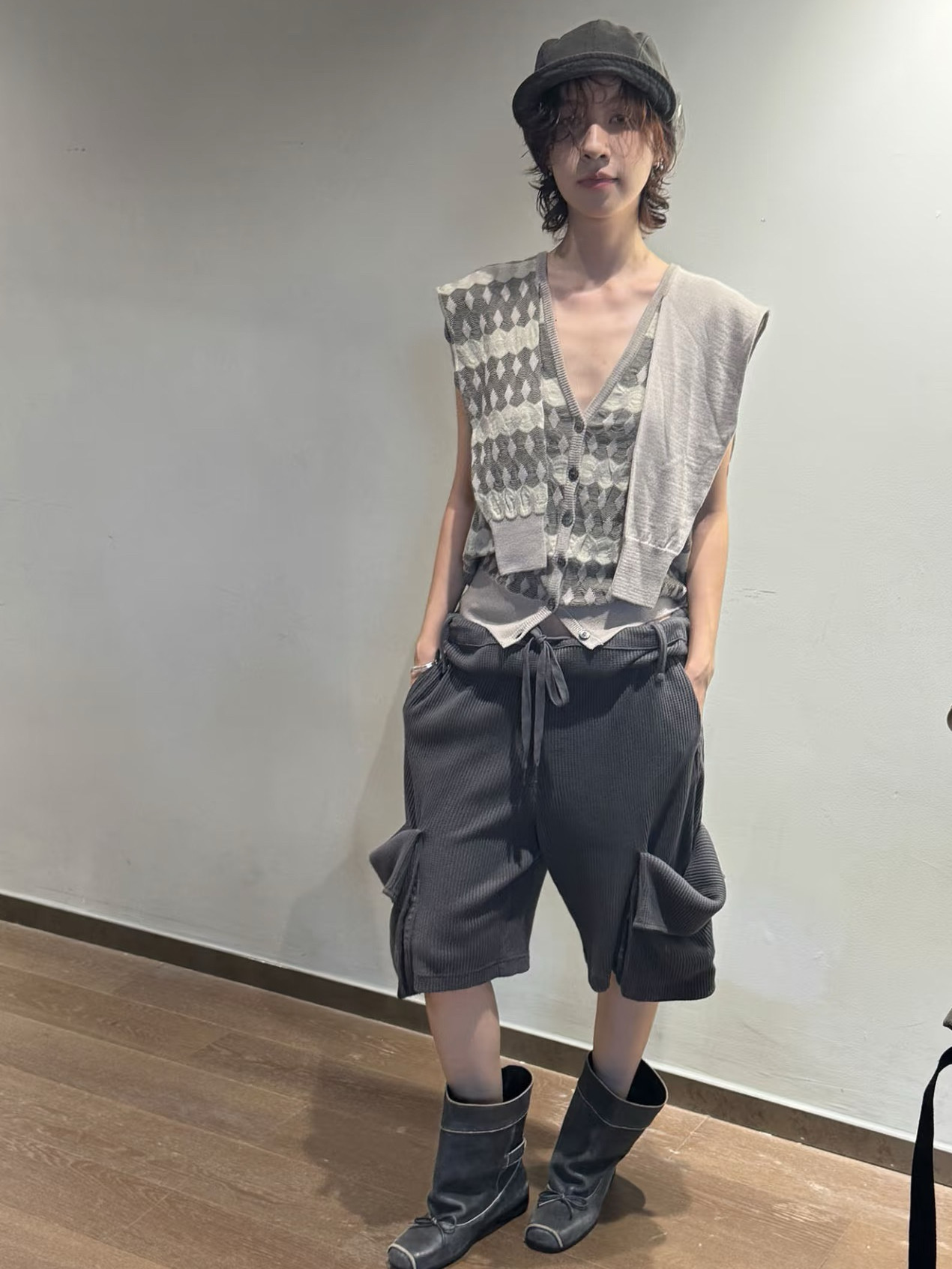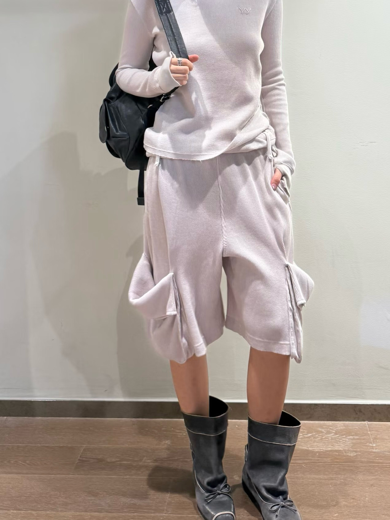 宽松简约卷边腰头系带华夫格纹休闲短裤 现货秒发 26新款 OPEN