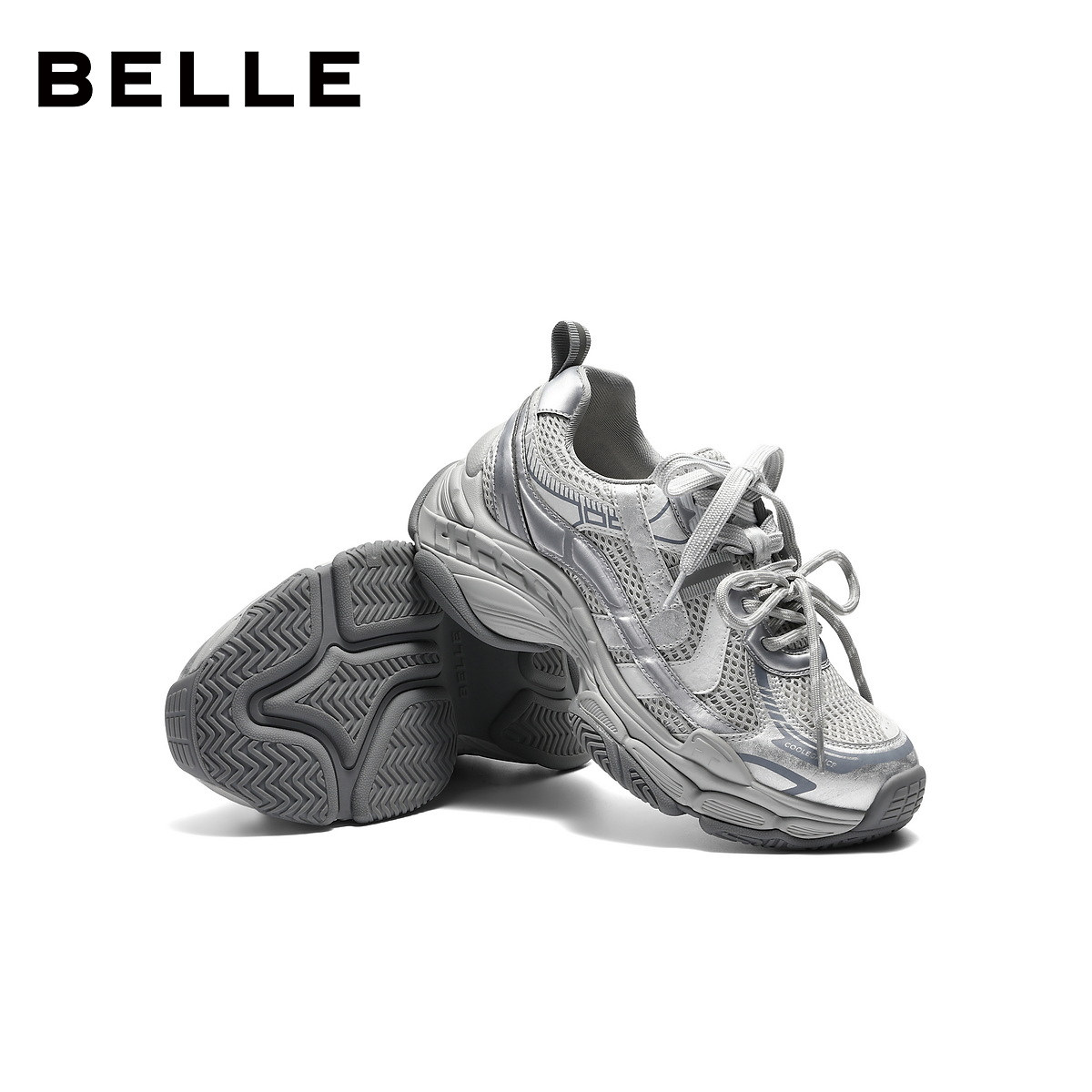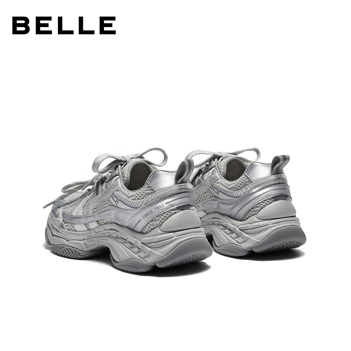 增高休闲鞋 商场新款 F6H1DAM6 女2026春季 百丽网面银色厚底老爹鞋