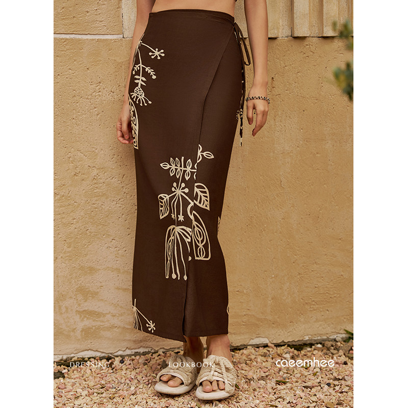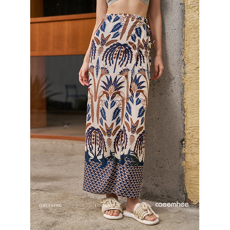 卡益印花半身裙女春夏2026新款 高腰显瘦波西米亚包臀长裙 高端时尚