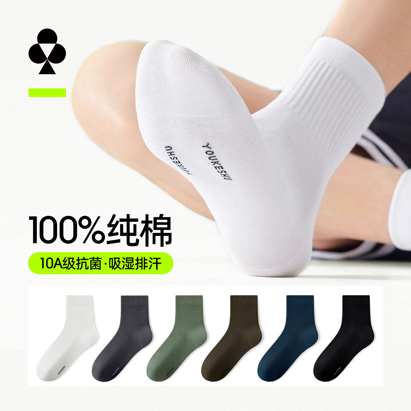 有棵树袜子男士 吸汗透气防臭男袜 100%纯棉中筒袜10A级抗菌春秋季