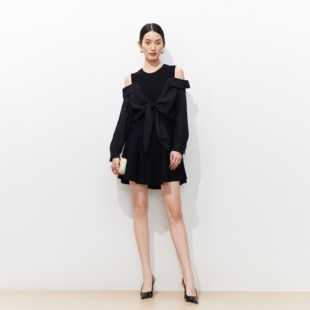 Vero 含莱赛尔腰间打结露肩短裙32617D016 Moda连衣裙2026春新款
