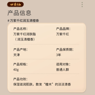 万紫千红润肤脂润玉清檀香40g 滋润肌肤秋冬擦手霜护肤霜 3盒保湿