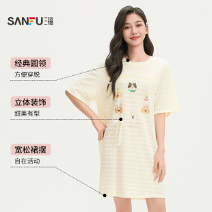 家居服 净雪花棉抗菌睡衣甜美印花宽松趣味短袖 三福睡裙女款 春夏季