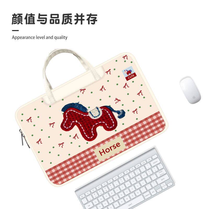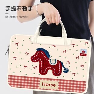 可爱卡通小马笔记本电脑包适用手提苹果15.6寸华为matebook14联想14寸小新戴尔12寸女士新款 通勤平板收纳包