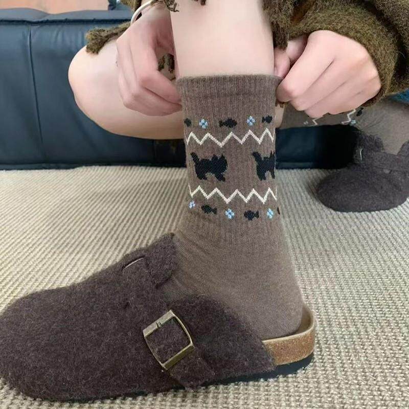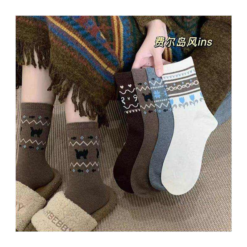 提花设计感学院风舒适百搭吸汗民族风中筒袜不撞款 费尔岛秋季 新款