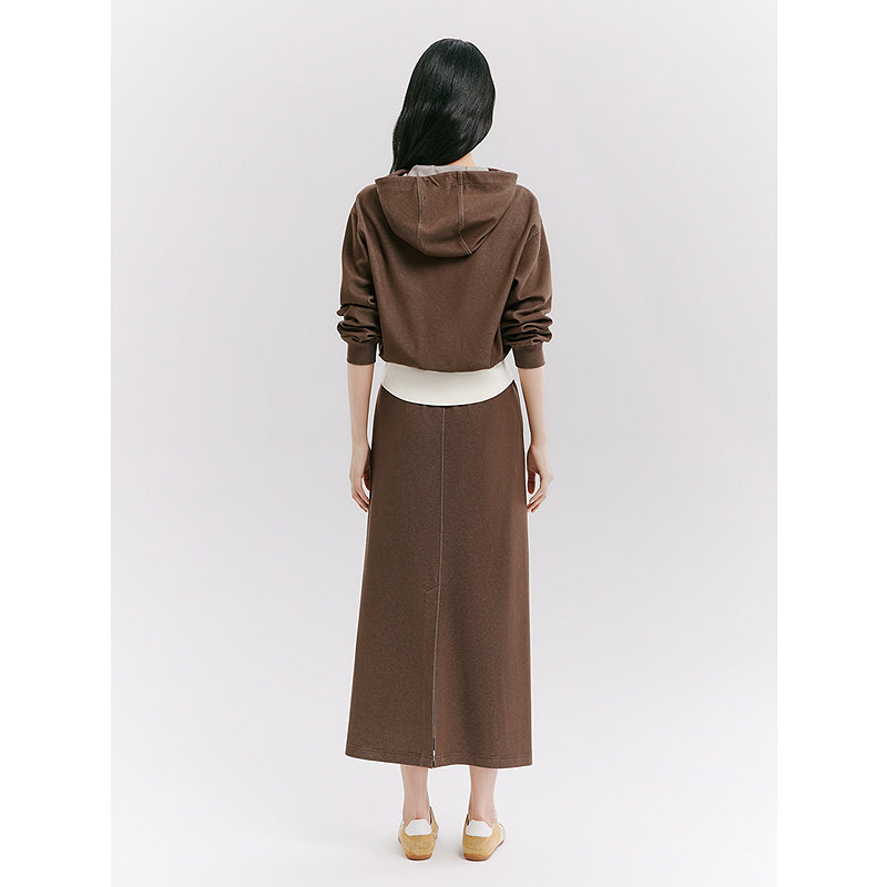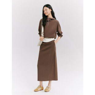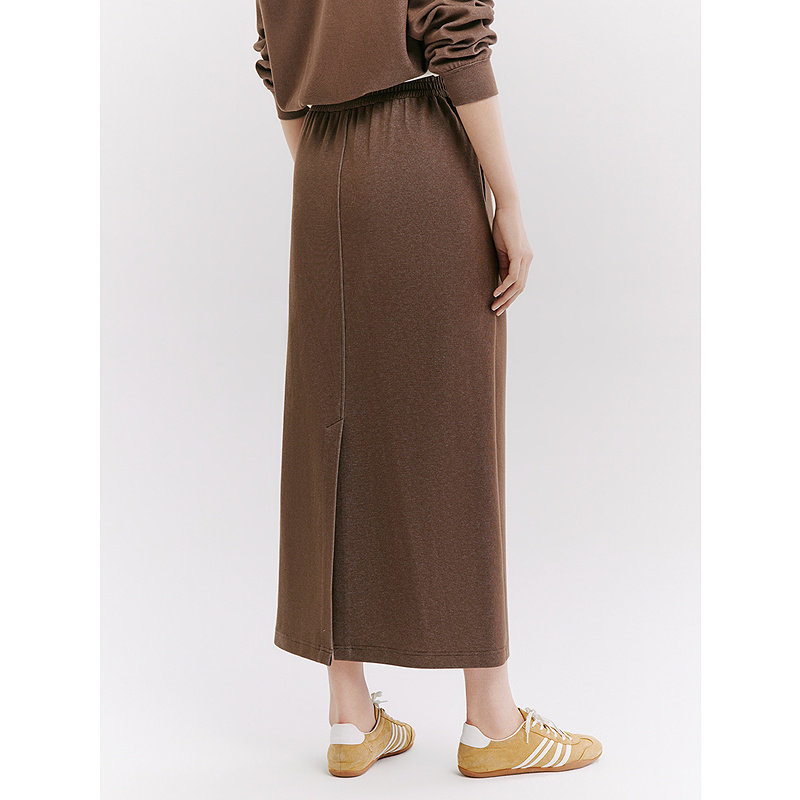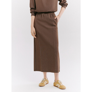 十二篮26春新款 棉质显瘦直筒半裙女松紧休闲通勤中长裙驼色