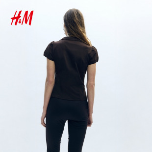 设计感纽扣前襟有领上衣短袖 HM女装 修身 新款 1316907 T恤2026春季