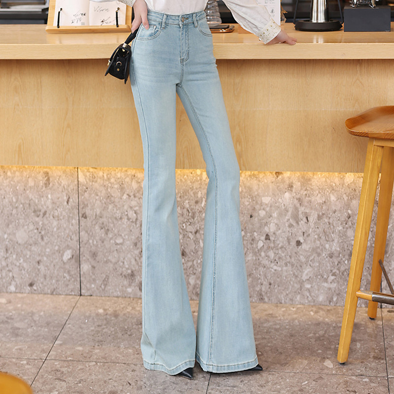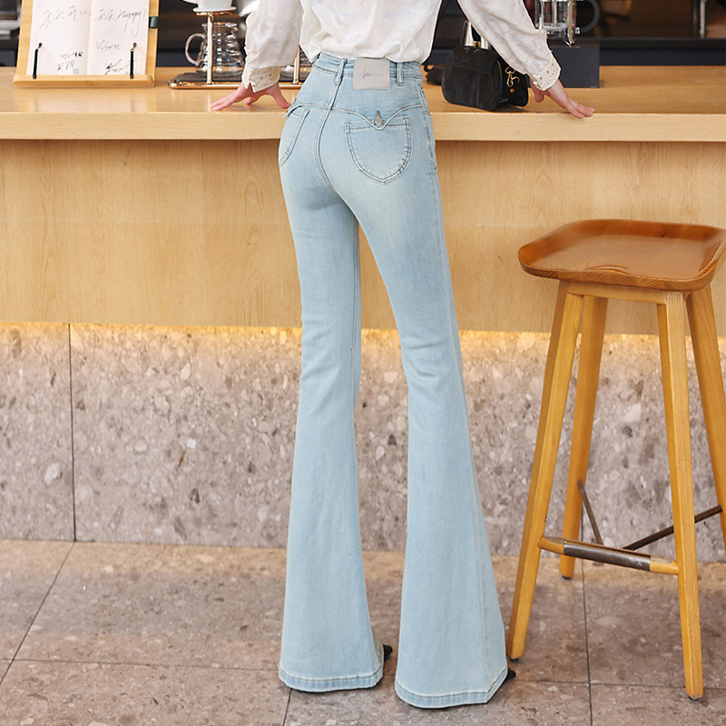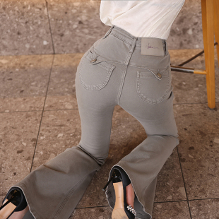新款 高腰微喇牛仔裤 2026春季 显瘦提臀长裤 棉弹牛仔布 女灰色修身