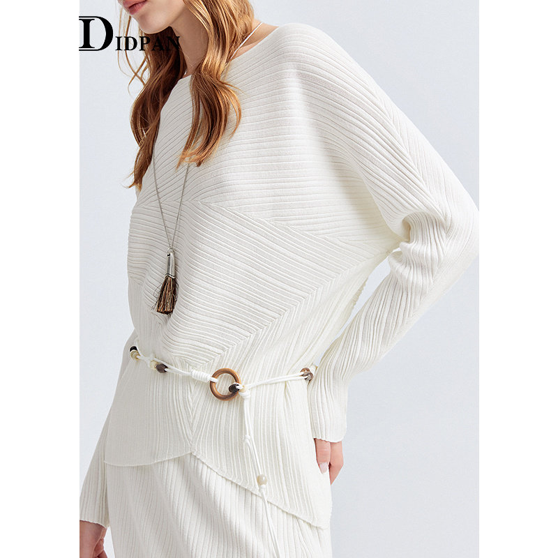 新款 气质26春季 都市松弛感 蝙蝠袖 IDPAN一字领上衣女不规则针织衫