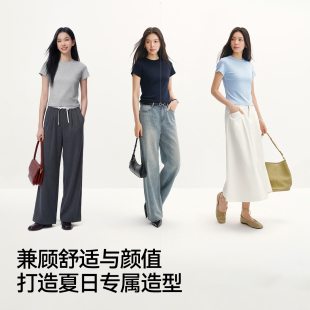 森马短袖 百搭套头衫 T恤女夏短款 正肩圆领上衣2026新款 修身 凉感T