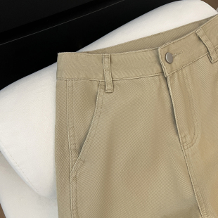 百搭拖地款 简约裤 女卡其色宽松高腰显瘦阔腿裤 艾格2026直筒牛仔裤