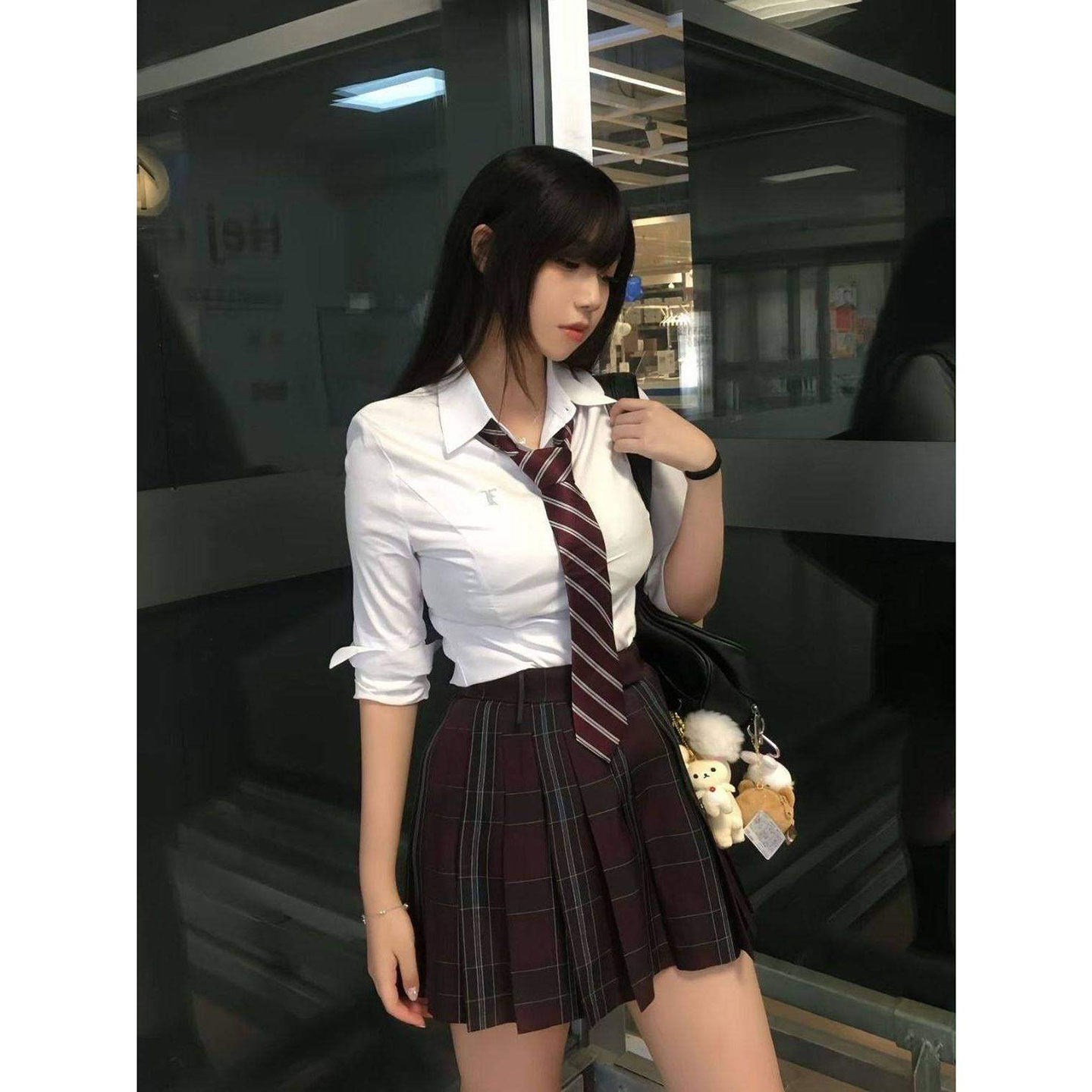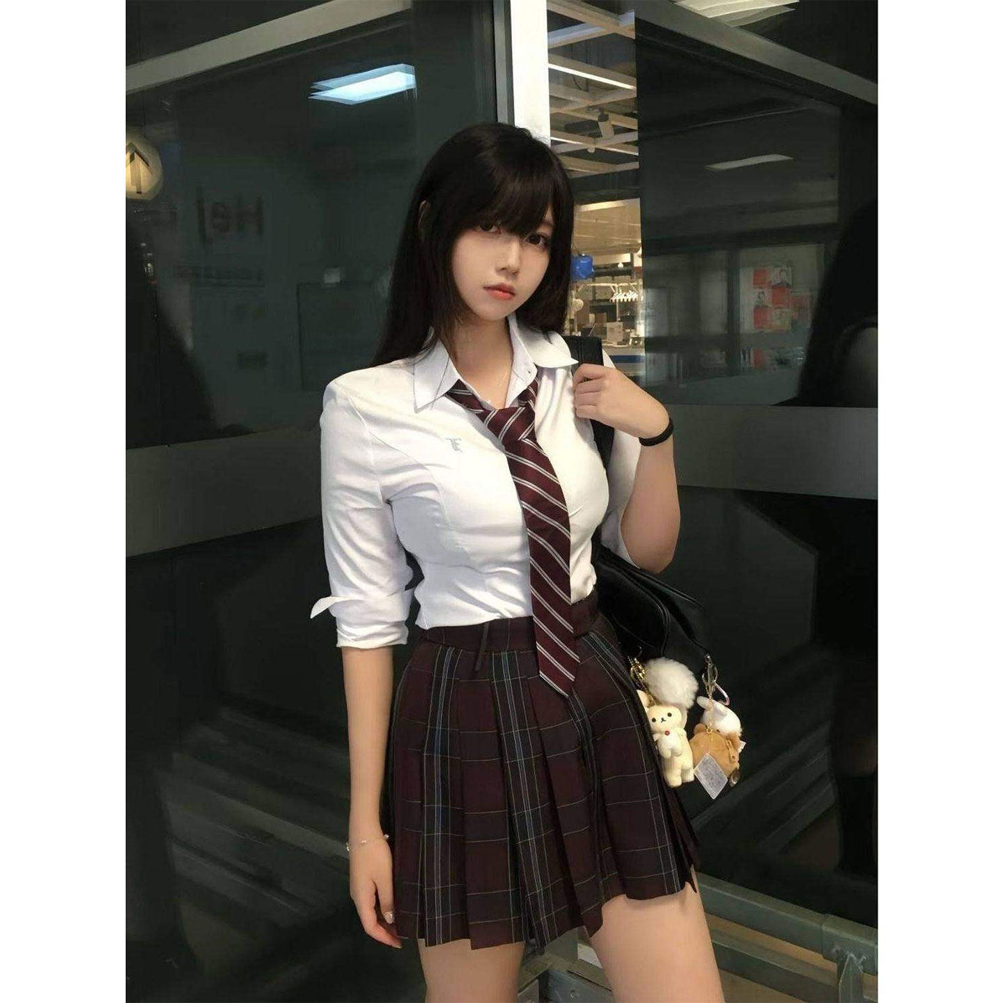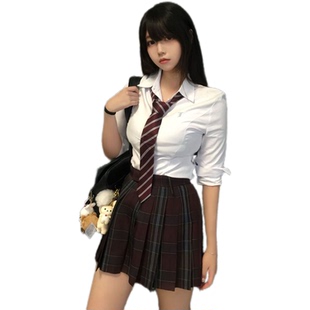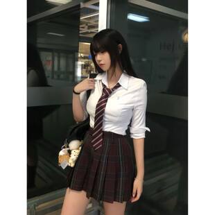 刺绣上衣红格半身裙女装 jk制服套装 修身 衬衫 春秋学院风 小栀川长袖
