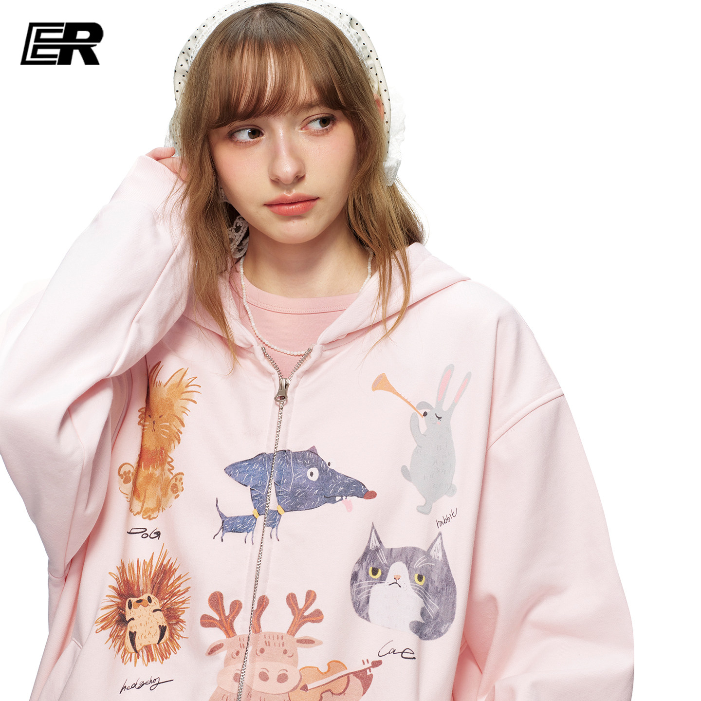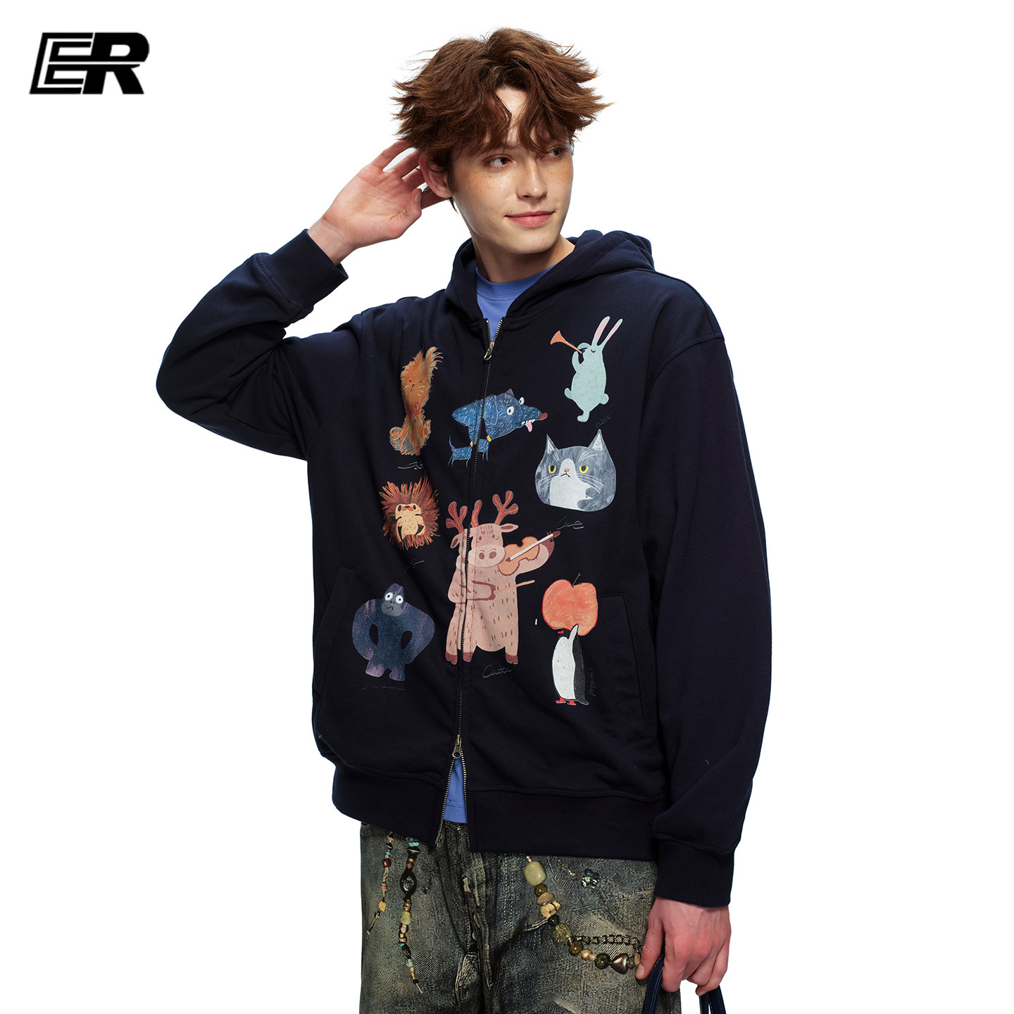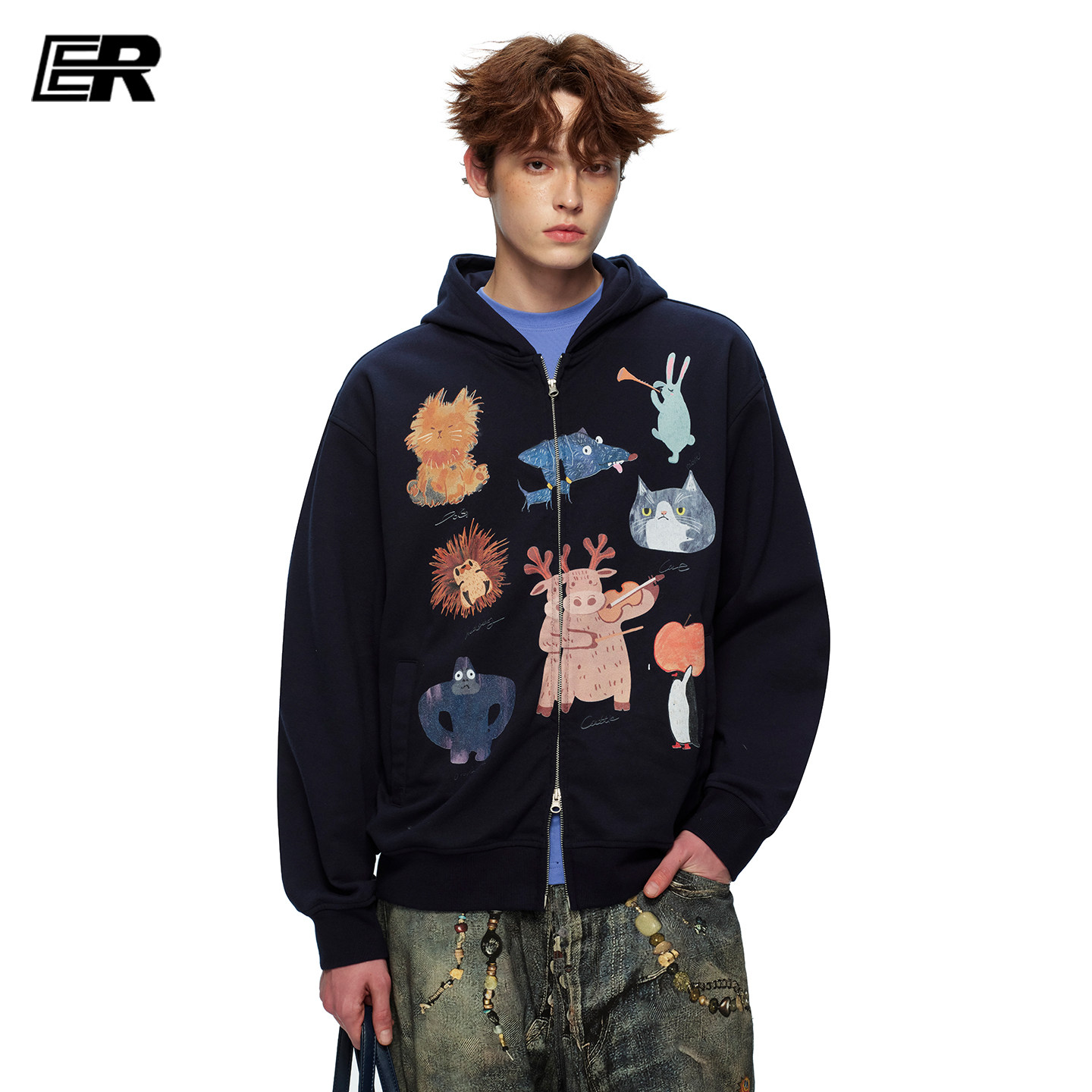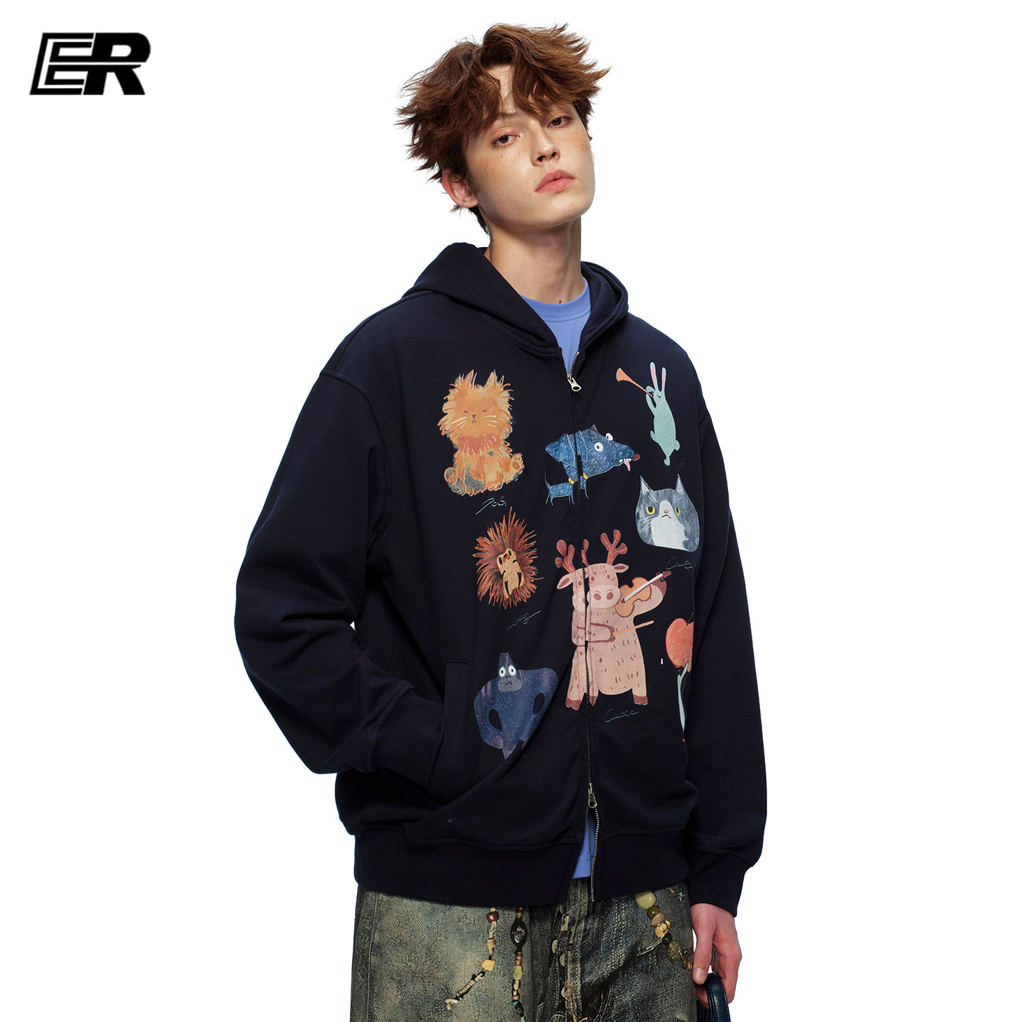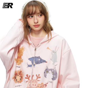 潮牌宽松休闲情侣装 卫衣男女春季 印花连帽开衫 ER可爱童趣萌宠美式