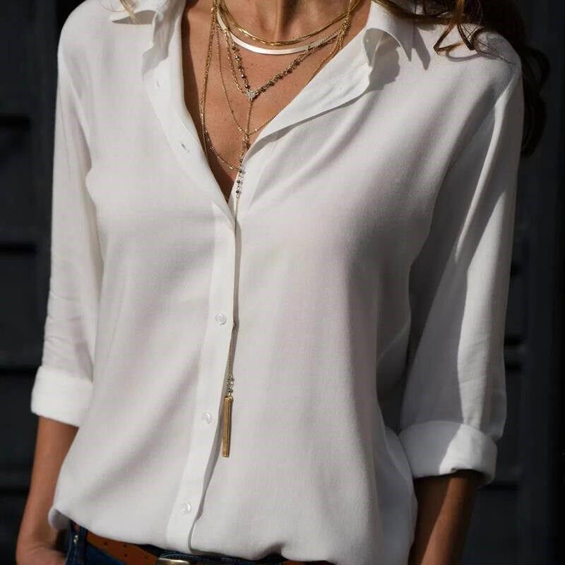 Long Sleeve Women Chiffon ops Oversized Blouses Turn Blouse