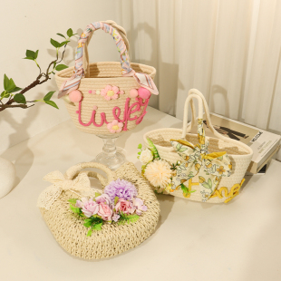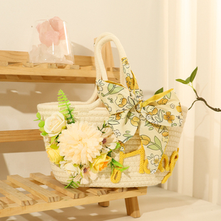 手工草编包diy材料包仿真花艺编织包包DIY活动暖场团建女神节礼物