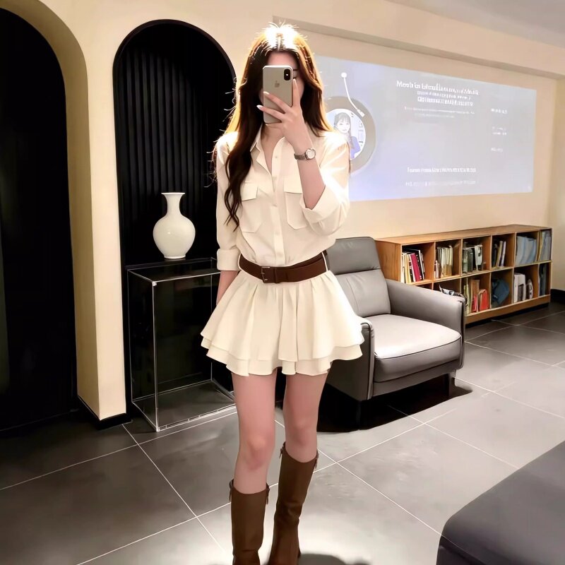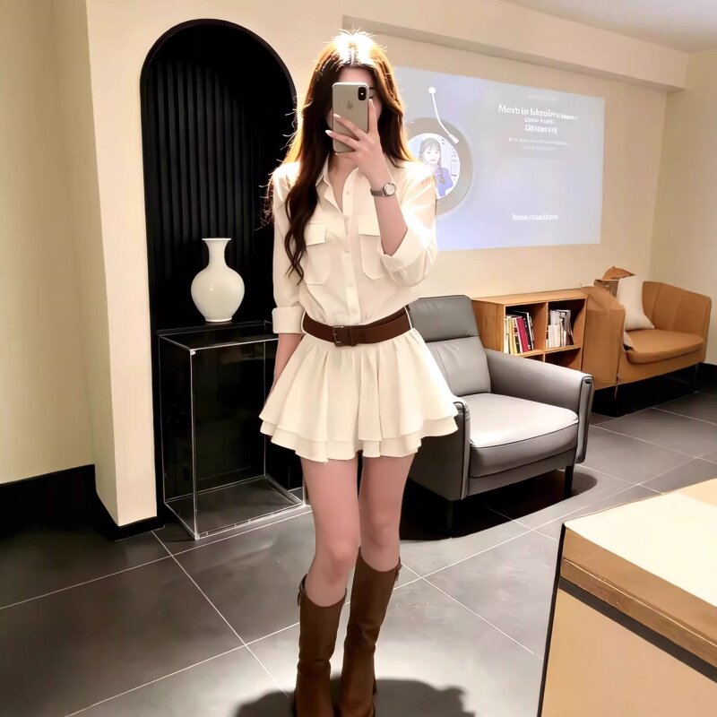裙+腰带 轻奢衬衫 超仙绝美温柔千金度假风白色显瘦短裙秋季 新款