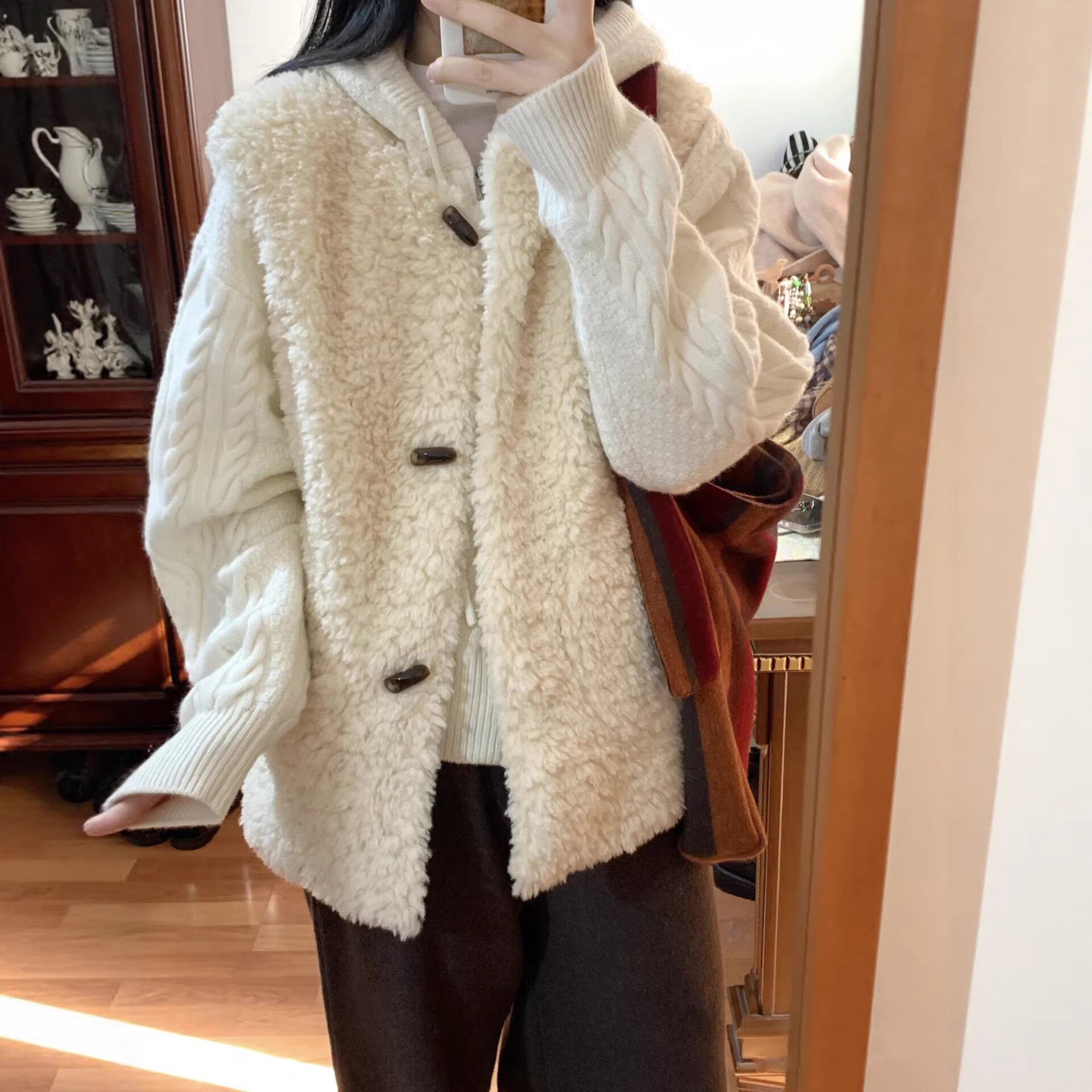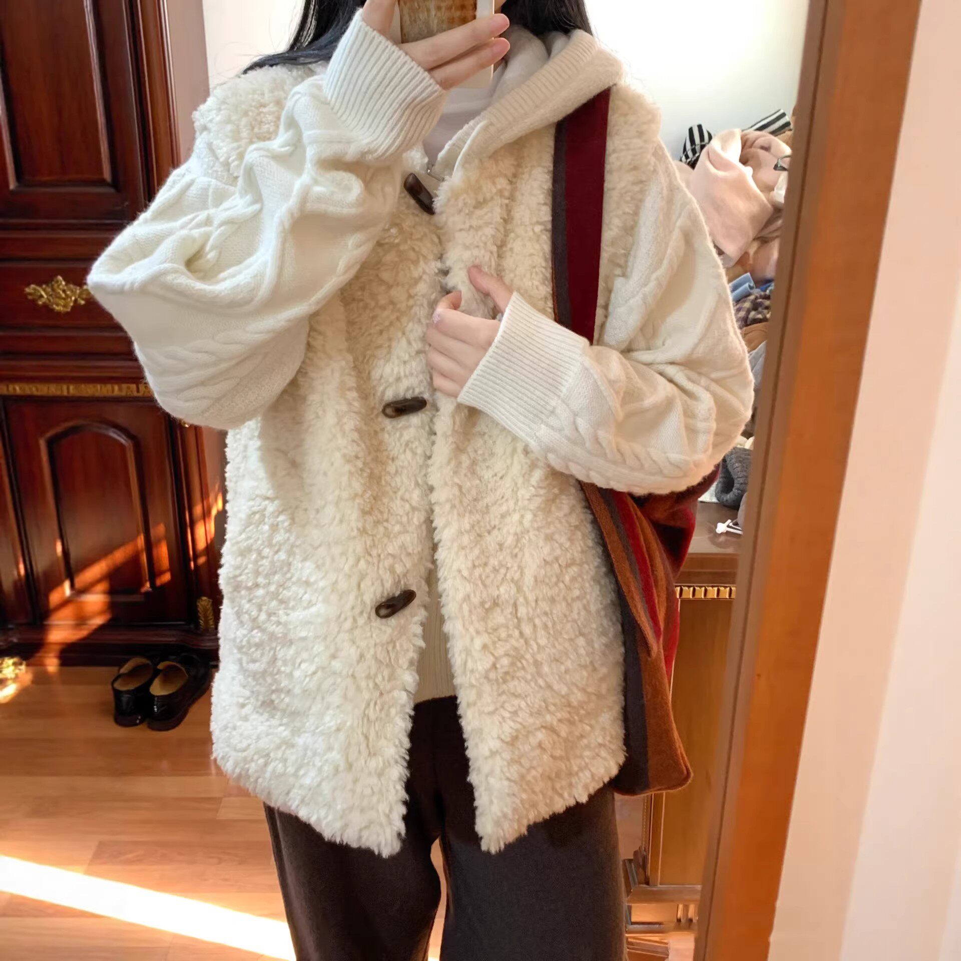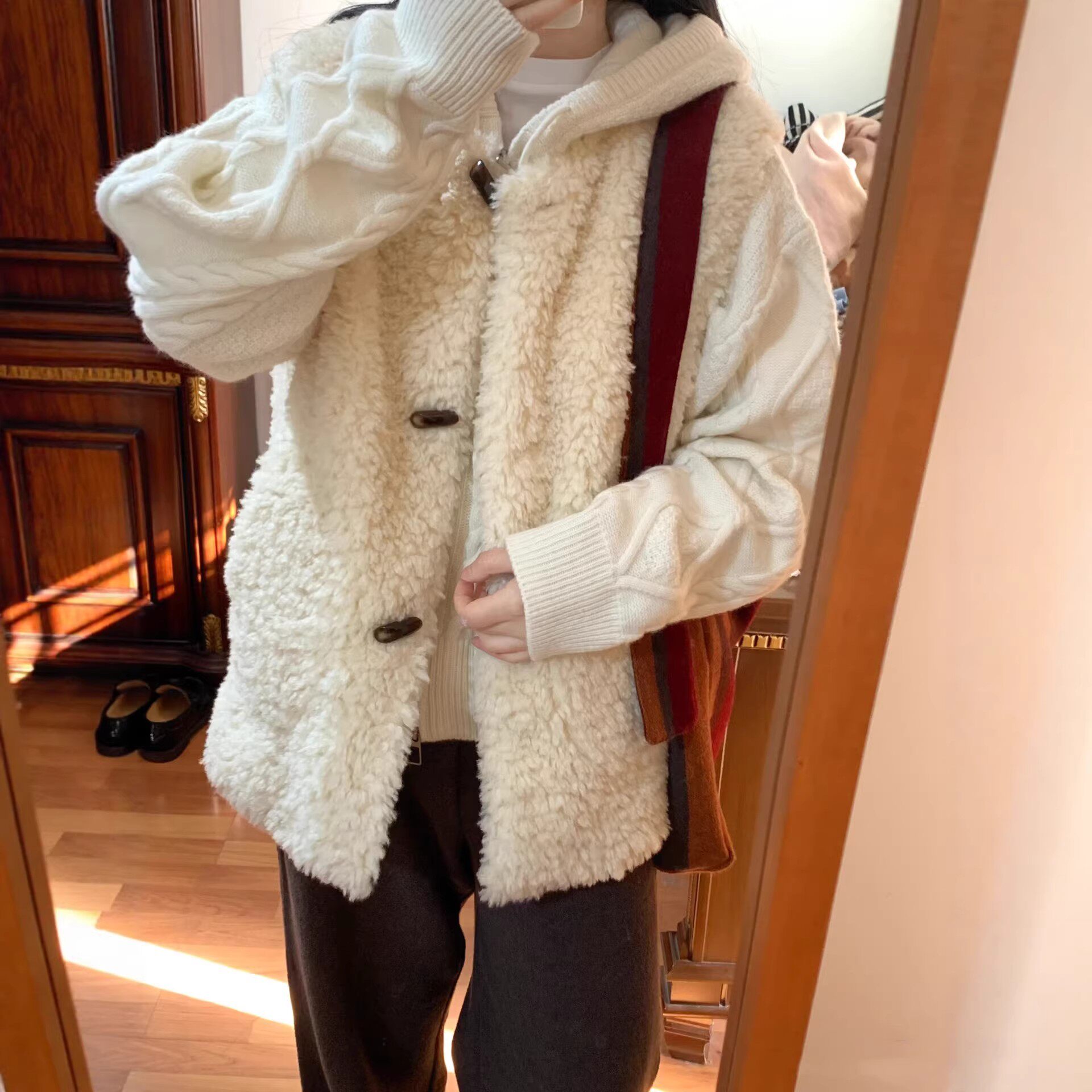 牛角扣羊羔毛2026新款 环保坎肩毛毛外套 皮毛一体马甲女春秋韩版