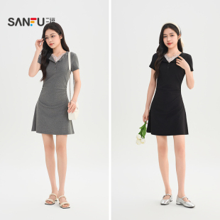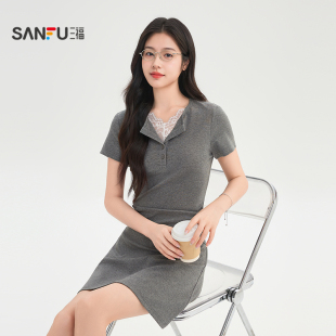 气质小V领蕾丝边收腰显瘦短裙子女装 三福纯欲连衣裙2026新款 夏季