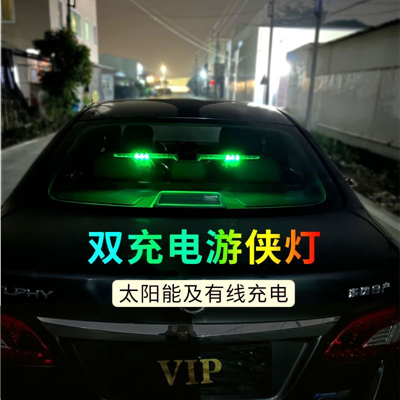 加长汽车游侠灯太阳能警示LED灯通用车载多功能装 饰爆闪防追尾灯