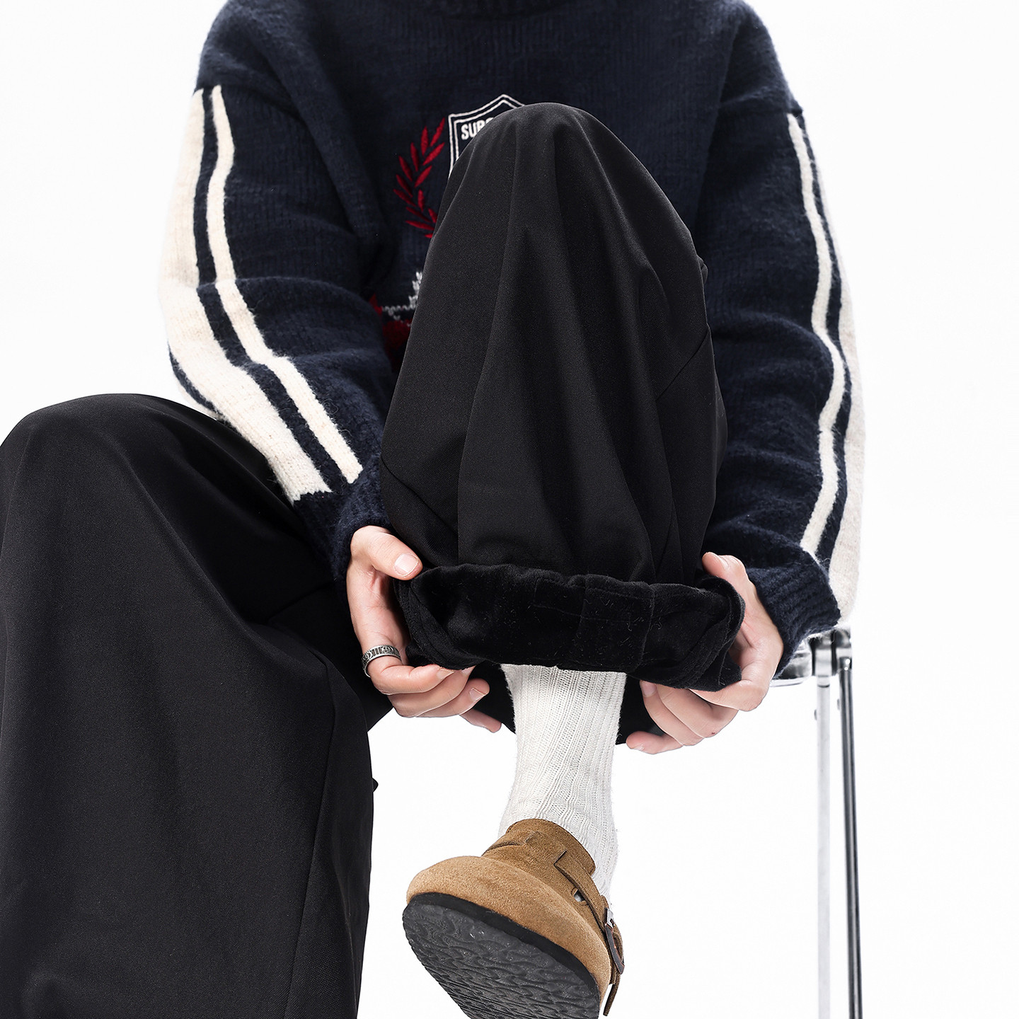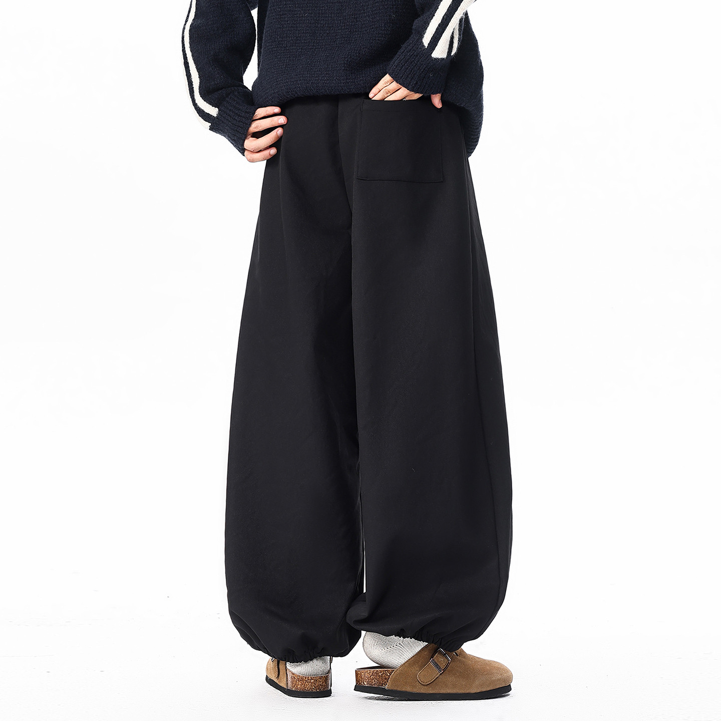 加厚2025新款 冬季 休闲长裤 男士 阔腿灯笼裤 子男款 保暖裤 黑色加绒裤