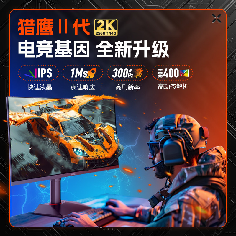 HKC显示器27英寸2K电竞300HZ高刷银河V7升降电脑320屏幕G27H4Plus