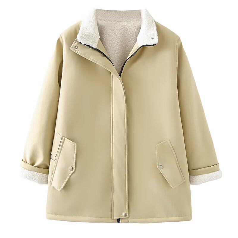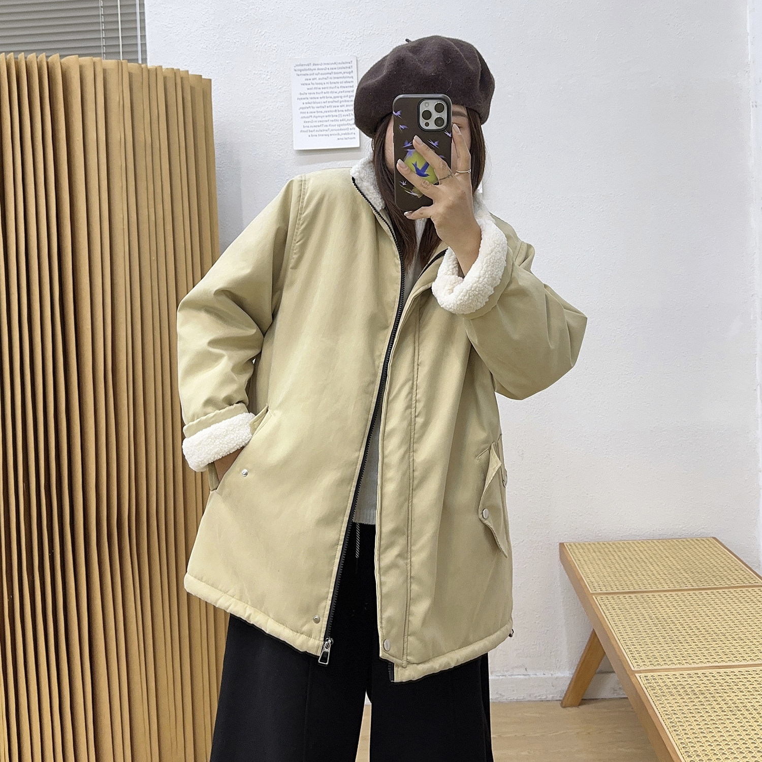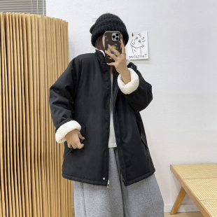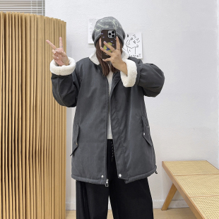 高级感羊羔毛外套 胖MM黑色加绒加厚派克服上衣女冬季 宛宛大码 女装