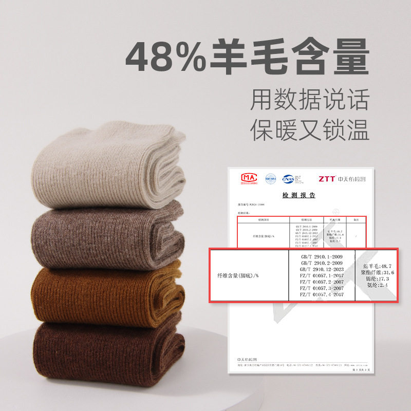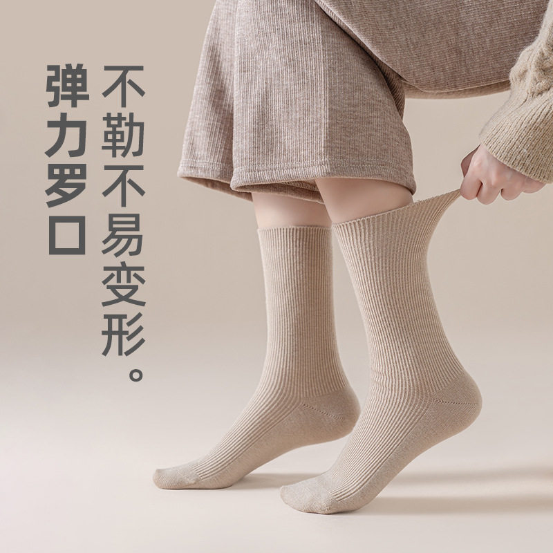 羊毛袜子女冬季 双针堆堆袜无骨女士冬天保暖长筒袜子 中筒袜秋冬款