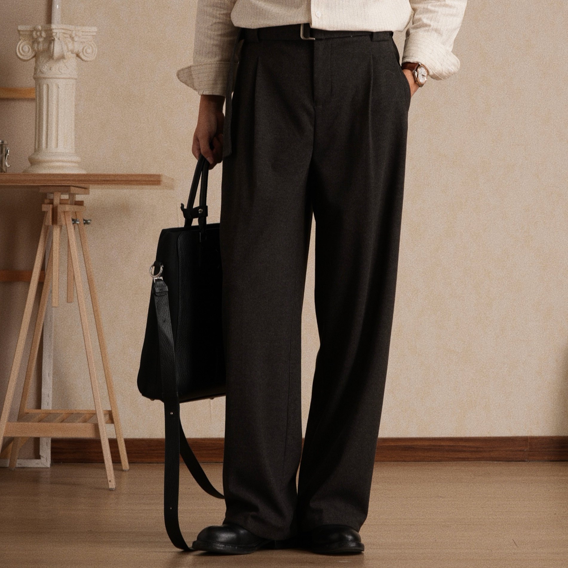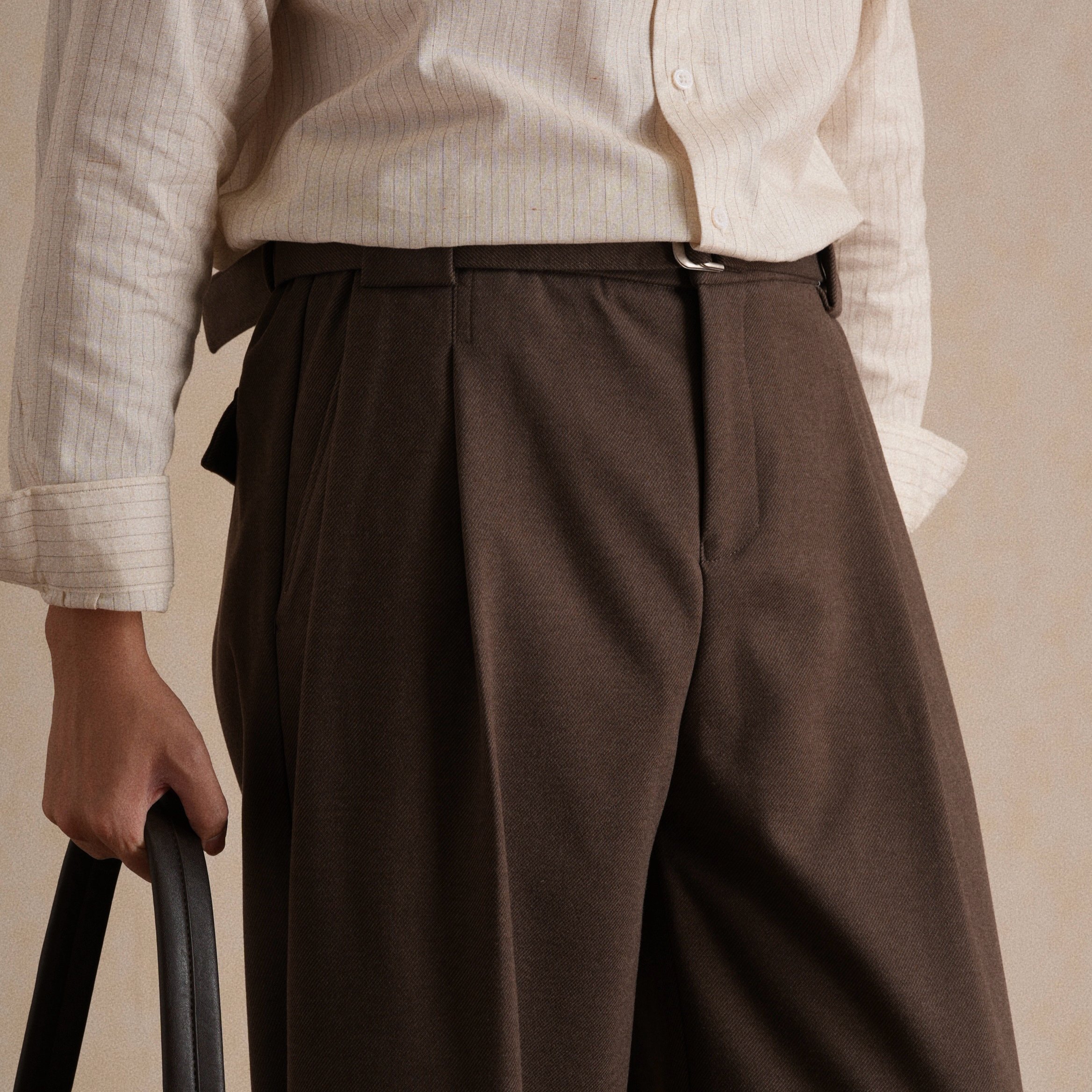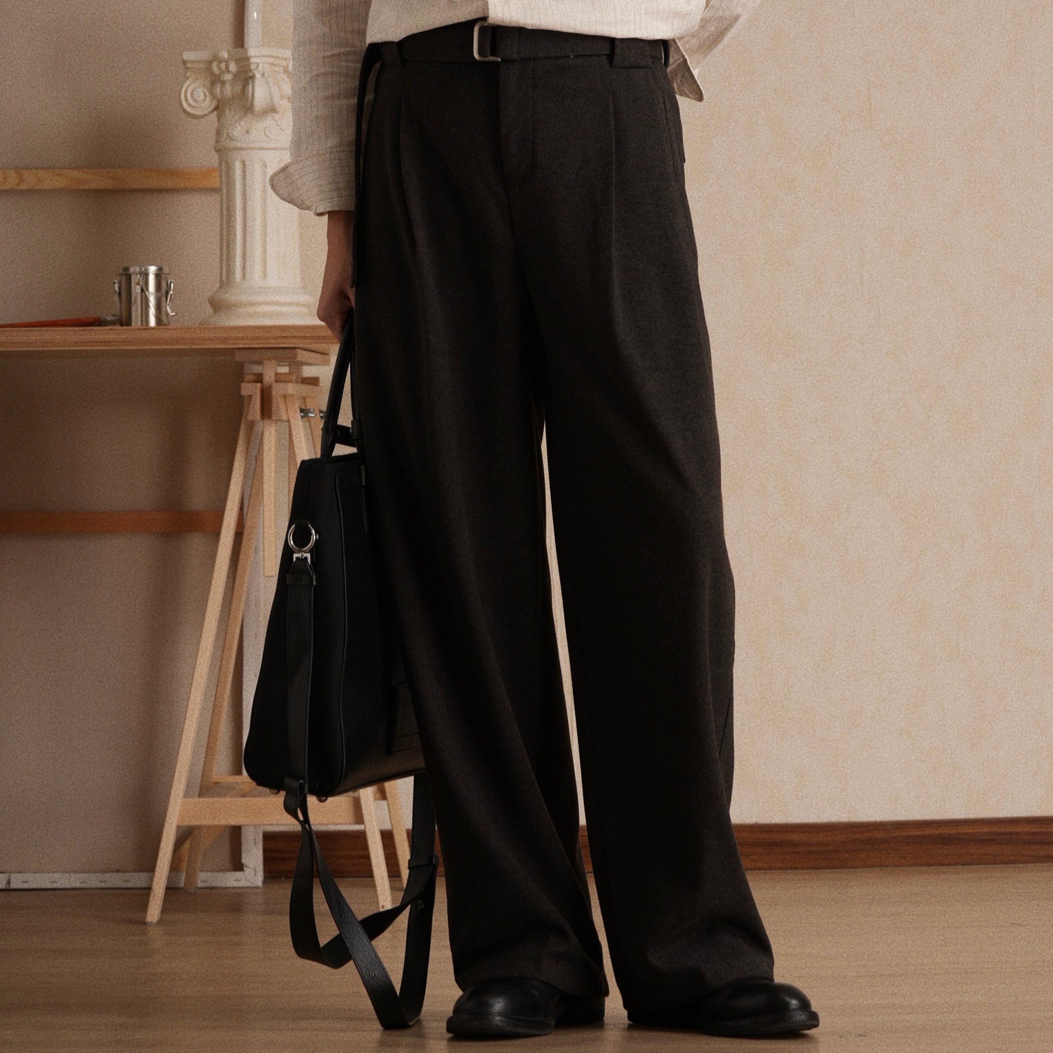 复古松弛感百搭老钱风休闲裤 冬双褶微阔休闲西裤 可机洗 男 厚款