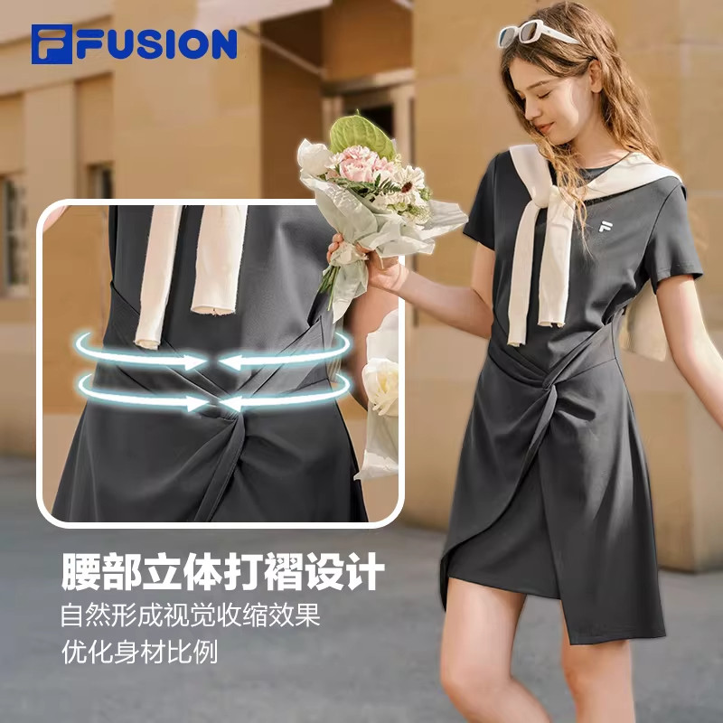 不规则设计长裙T恤裙 新款 FILA FUSION斐乐潮牌针织连衣裙女26夏季