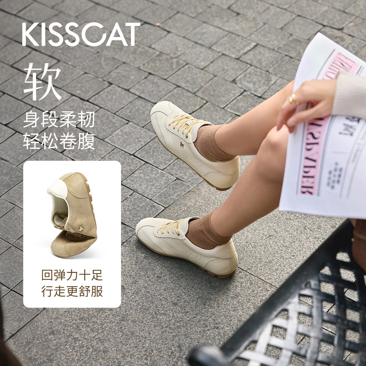 复古内增高薄底德训鞋 26春新运动休闲鞋 女 小财马 KISSCAT接吻猫