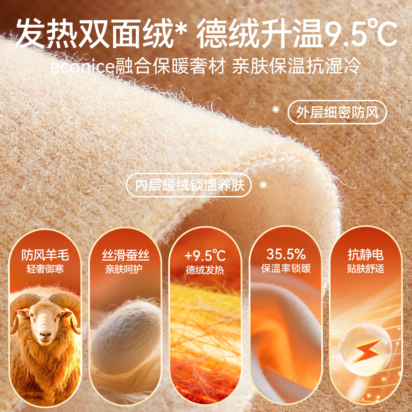 内穿高腰保暖裤 德绒蚕丝羊毛裤 发热秋裤 冬季 加绒加厚无痕女棉毛裤