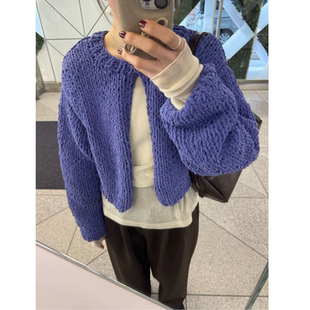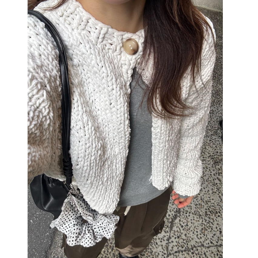 可爱减龄一粒扣圆领粗棒针毛线开衫 CP2025冬季 合作款