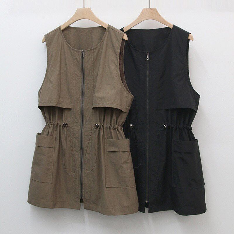 坎肩开衫 春秋马甲女式 韩版 新款 外穿宽松坎肩 马夹收腰202w4中长款