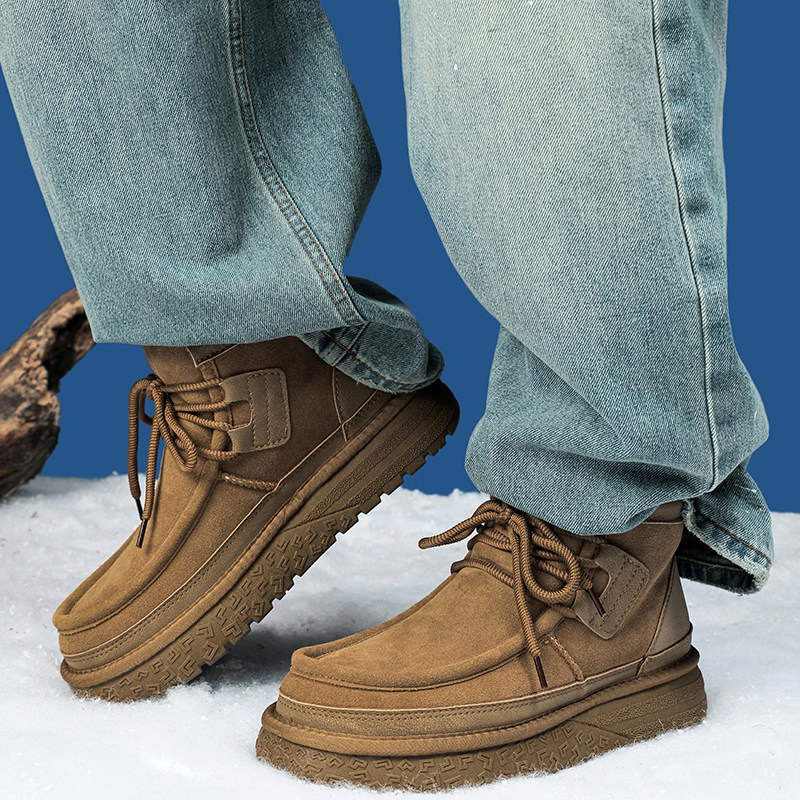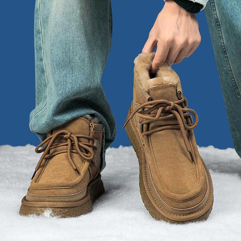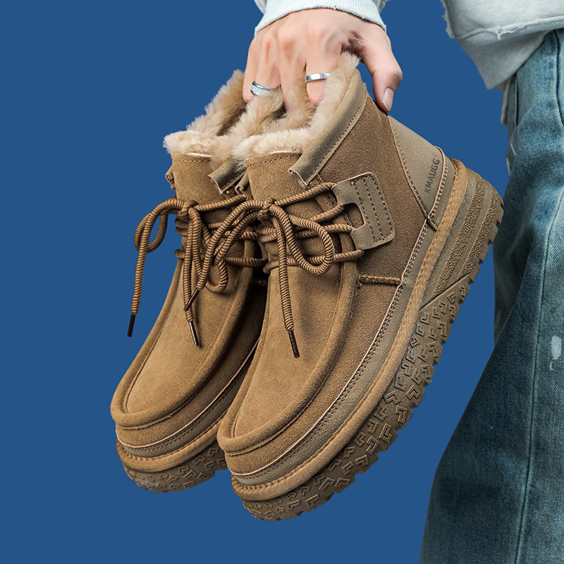 皮毛一体防水防滑高帮工装 加绒保暖东北棉鞋 马丁靴 冬季 雪地靴男鞋