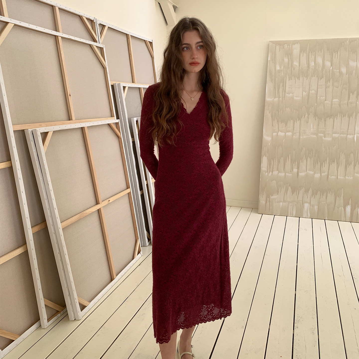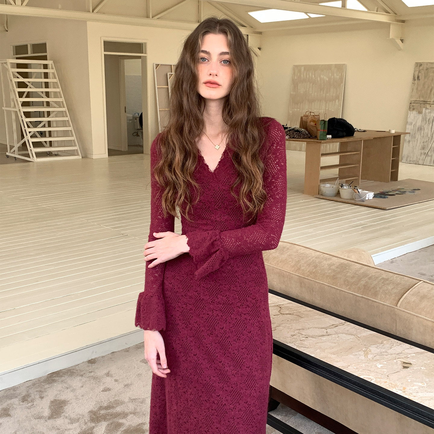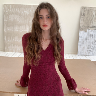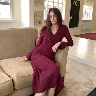 针织加绒秋冬连衣裙女蕾丝收腰高级感显瘦 法式 ZHUYIYI 新款